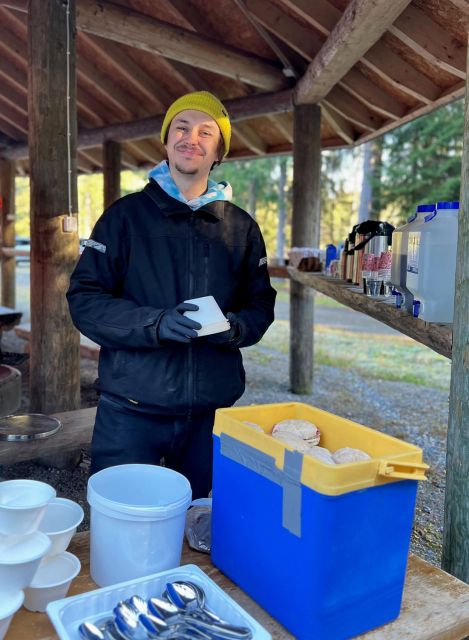 – Jälkiruoaksi tarjoilimme voisilmäpullia ja kahvia. Se on ihan parasta raikkaassa syyspäivässä nuotiotulilla.