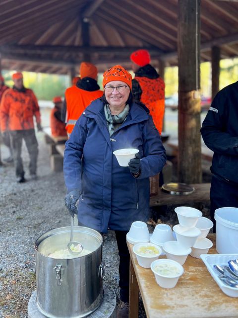 Peurapataa oli pöydässä lokakuussakin, kun paikallinen metsästysporukka viihtyi Inkalassa. Lohikeittolounas ja täytetyt sämpylät tarjoiltiin Hämeen läänin metsästysseuran laavulla Hämeenlinnassa.